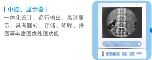 該系列產品整機由主機(控制器、C形臂架),X射線源組件(組合式)、影像增強器、電視系統(攝像機、圖像控制器、監視器)和監視器架等部分組成。