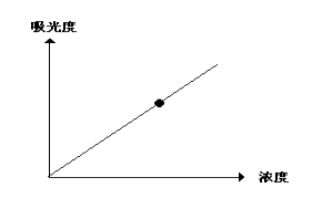 “直線法”:需要設(shè)置1個(gè)標(biāo)準(zhǔn)品,以原點(diǎn)和標(biāo)準(zhǔn)點(diǎn)的連線為定標(biāo)曲線(橫坐標(biāo)為濃度,縱坐標(biāo)為吸光度),單點(diǎn)定標(biāo)必須設(shè)置空白孔以校準(zhǔn)0點(diǎn)。如下圖所示: