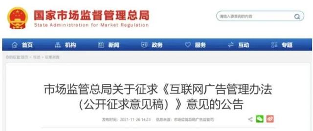 近日,市場監管總局發布《互聯網廣告管理辦法(公開征求意見稿)》,擬對此前2016年原工商總局制定的《互聯網廣告管理暫行辦法》進行修訂,以進一步完善互聯網廣告監管制度,增強互聯網廣告監管的科學性、有效性,促進互聯網廣告業持續健康發展。