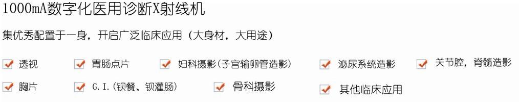 工頻胃腸機不僅僅具有這些功能,還能夠進行消化道檢查,胸部攝影,頭顱及全身骨骼攝影。胃腸造影、食道造影、脊髓造影、關節腔造影、膽道造影、支氣管造影、靜脈造影、周邊血管造影、泌尿系統造影、子宮輸卵管造影、兒科影像檢查、部分介入放射治療應用。也可以用于在透視下進行骨折整復、取異物等。