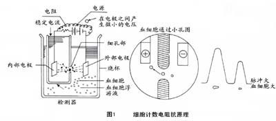 稀釋血液細胞,防止血液細胞聚集和粘連;保持穩定的pH、ρ、OS等理化指標:根據血液細胞分析儀設計理念不同,稀釋液的理化指標有很大的差異,不同的血液分析儀醫療器械在用電阻法原理(如圖)測量樣本時,設定的脈沖信號閾值不盡相同(稀釋液區分為高滲、等滲、低滲),因此同一份樣本在不同血液分析儀上直方圖fl不同。以RBC直方圖為例,靈敏度高的血液分析儀配以理化指標穩定且范圍精確的稀釋液,可以將橫坐標控制在60-150fl,反之,橫坐標將會延伸到30-200fl甚至更寬,直方圖會發生左移或者右移。