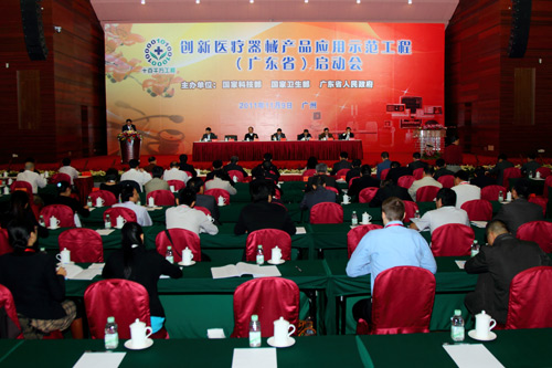 為提高全民健康水平,加快培育醫療器械戰略性新興產業,讓創新成果更好地服務于醫療衛生體系建設、保障醫療衛生體制改革的順利實施,讓科技成果更好地惠及廣大公從,2011年11月9日,科技部、衛生部和廣東省人民政府在廣州白云國際會議中心聯合舉辦了國家創新醫療設備產品應用示范工程(廣東省)啟動會。科技部王偉中副部長、衛生部劉謙副部長、廣東省人民政府宋海副省長出席大會并作重要講話。廣東省科技廳李興華廳長作廣東示范工程實施情況的工作報告。衛生部科技教育司何維司長、廣東省衛生廳陳元勝黨組書記,國家醫療器械產業技術創新戰略聯盟代表,重慶、遼寧、浙江、江蘇等省市科技廳、衛生廳代表,廣東省各地市科技局、衛生局的負責同志,國家及廣東省醫療器械公司代表,廣東示范醫療機構代表以及新聞媒體等共約300人參加了會議。啟動會由科技部社會發展科技司楊哲副司長主持。
